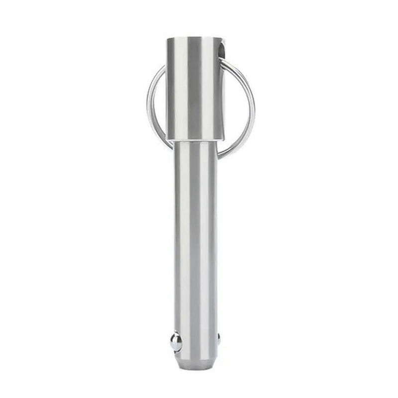 Πίεσε το κουμπί χειρισμού για να τραβήξεις πίσω την χάλυβα μπάλα στην κεφαλή της καρφίτσας, και γλιστράτε την καρφίτσα γρήγορης απελευθέρωσης μέσα από την τρύπα.τοποθέτηση της καρφίτσας στη θέση τηςΗ ταχεία αυτή διαδικασία εγκατάστασης εξασφαλίζει ότι η καρφίτσα μπορεί να απελευθερωθεί ή να κλειδωθεί γρήγορα και με ασφάλεια.